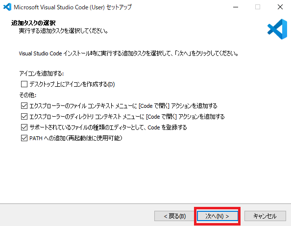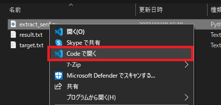 インストール完了後、Visual Studio Codeを起動するか、適当なテキストファイルを右クリックした際に「Codeで開く」の項目が追加されていれば正常にインストールできています。