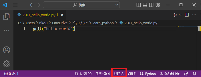 File "C:\Users\xxx\xxxx\ドキュメント\learn_python\2-01_hello_world.py", line 1, in <module>